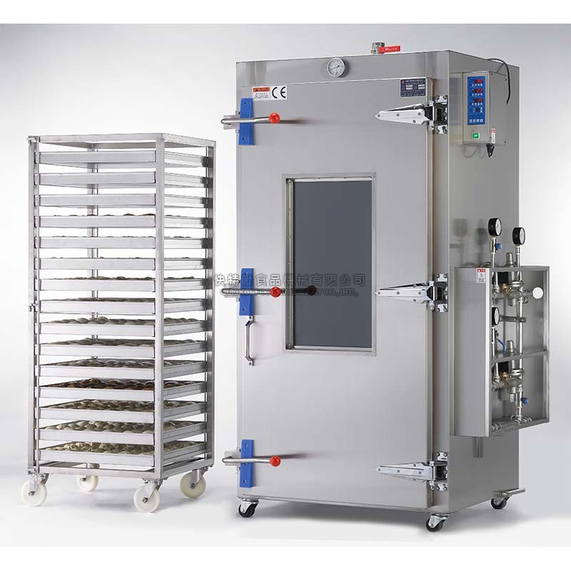定時、定溫,自動控制蒸氣三迴路設計、本機內外採用SUS304不銹鋼板、外體1.2mm厚、內體1.2mm厚、內體底板3.0mm厚、特製大型門扣、可微調式、及大型後鈕、可微調式、使庫內蒸氣不外洩、節約能源、又省時、省工、特設耐熱安全透視玻璃、能清楚看到蒸物過程、專業製造、品質保證。